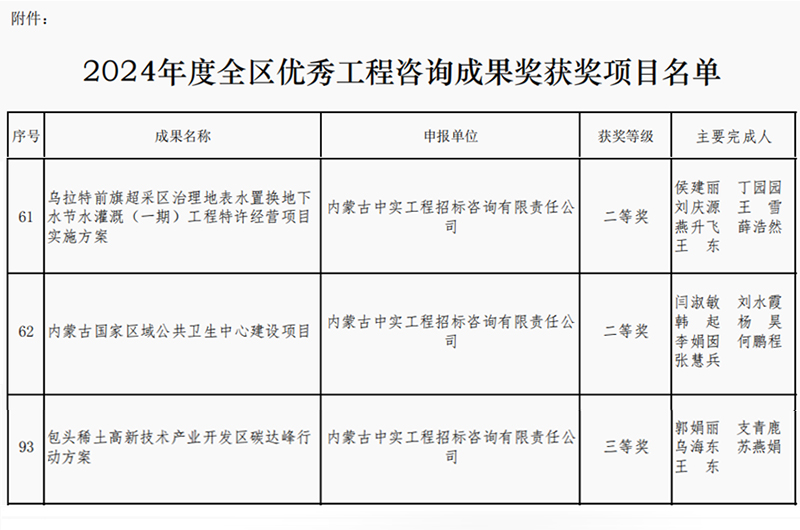 2025-04-168391 次2025年4月16日,内蒙古工程咨询协会公布了2024年度优秀咨询成果奖获奖单位名单,我司取得两个二等奖和一个三等奖,我司专业能力和服务质量再次获得行业的认可。此次获奖,不仅体…